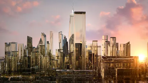 I had the opportunity to animate this intro for the US Open broadcast. The mandate was to start deep from space, fly over a New York City of glass buildings, show four pieces of replaceable key art, and fly out to logo, all in one shot. The city was made from a combination of DEM Earth, x-particles, some low poly models, and c4d mograph, rendered with octane. This piece, as well as the entire package for the US Open, was produced at Thornberg & Forester.